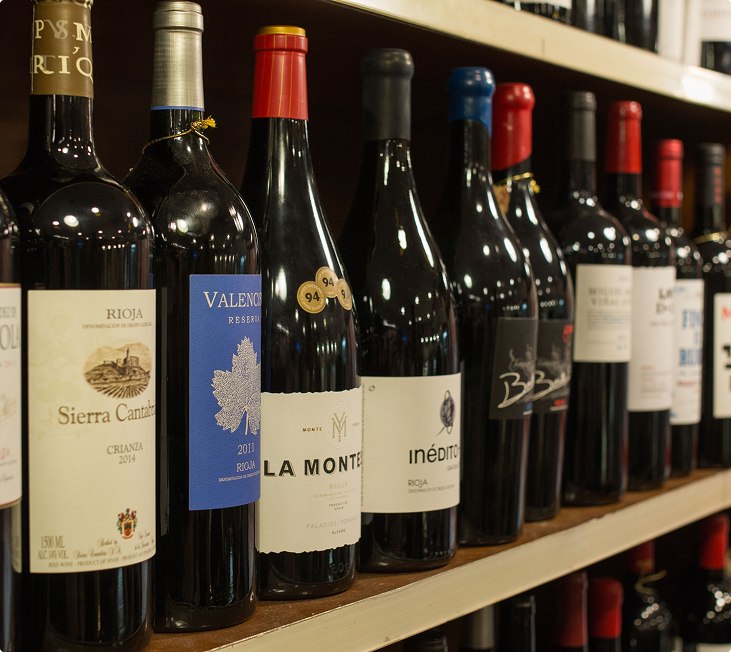 Además, en el propio local posee una enorme sección de vinos que pueden degustarse allí mismo. Estupendo sitio para disfrutar de productos de gran calidad con un buen vino.